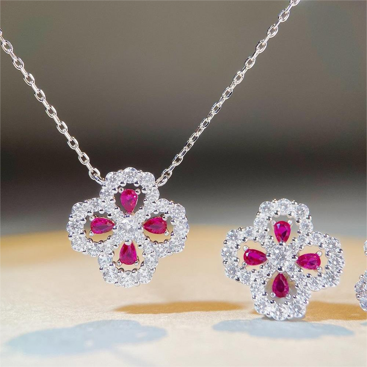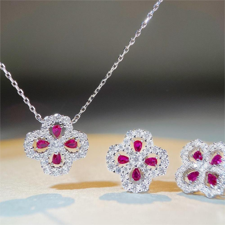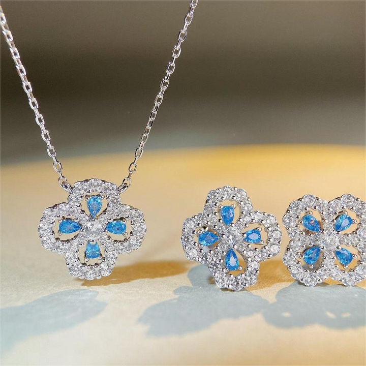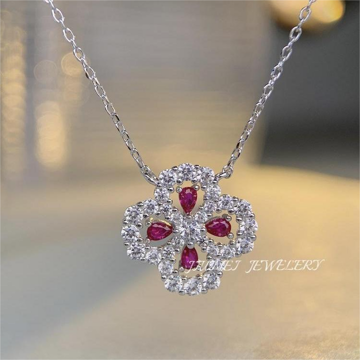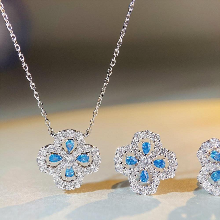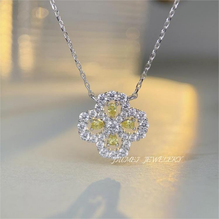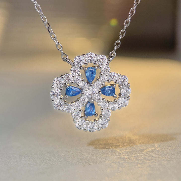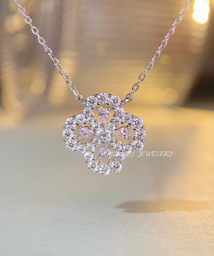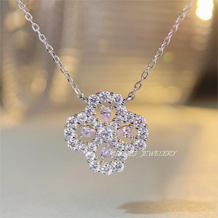 S925 pure silver necklace, women's clover full diamond collarbone chain accessory