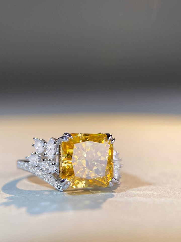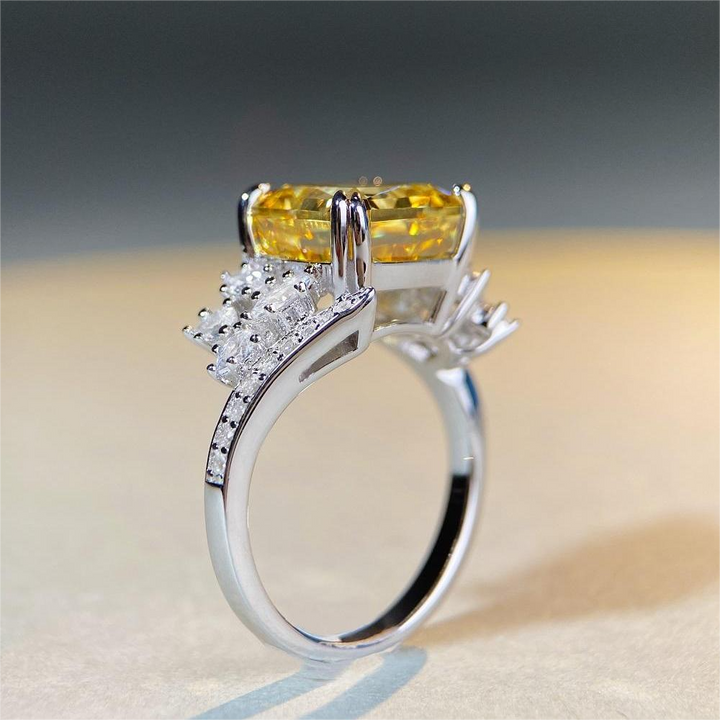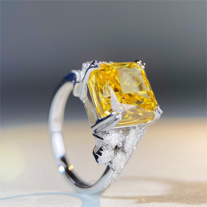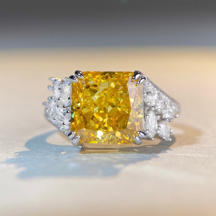 S925 pure silver ring female original design fashionable European and American yellow diamond Redion cut ring
