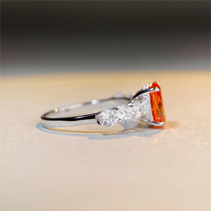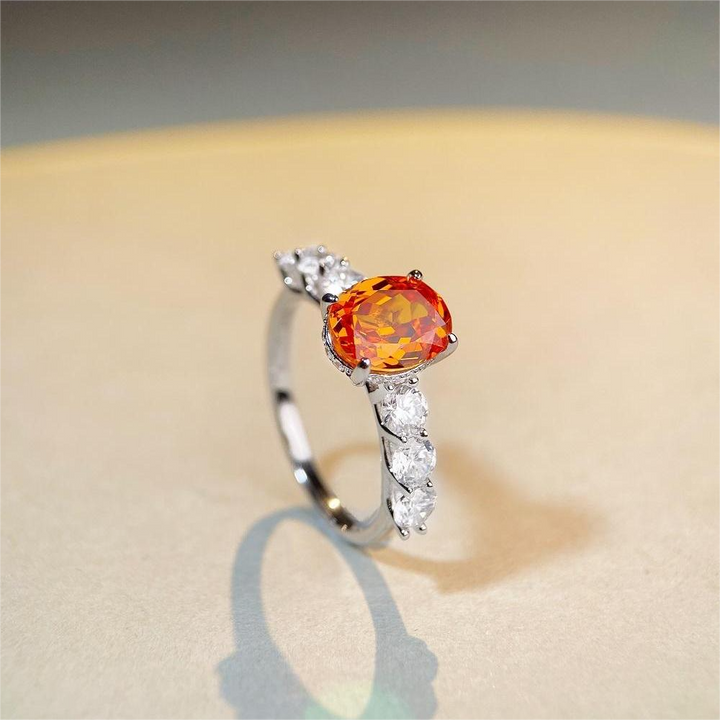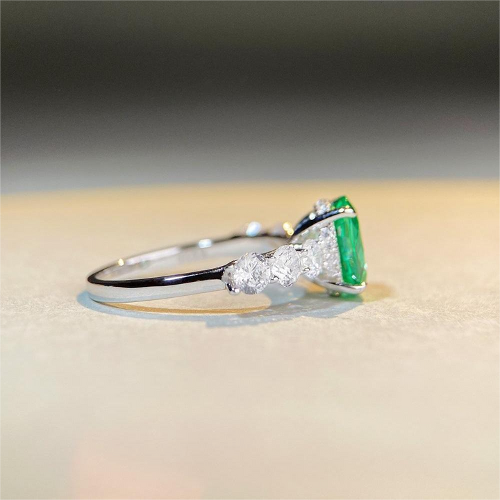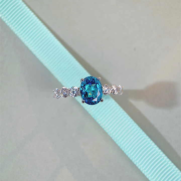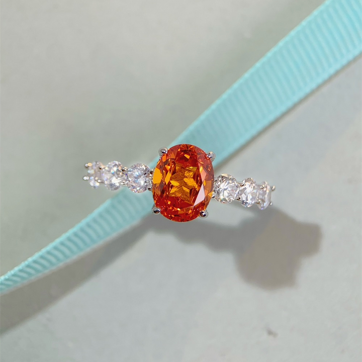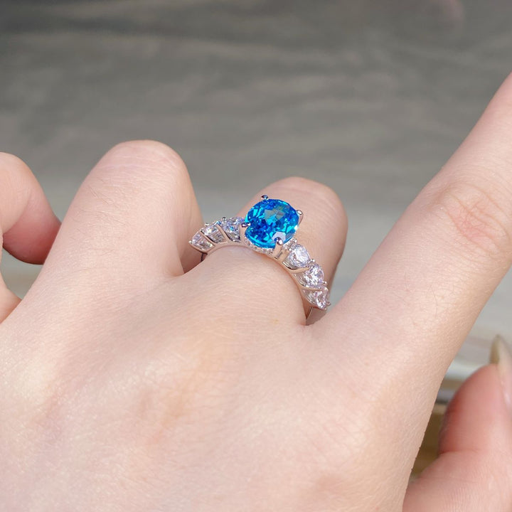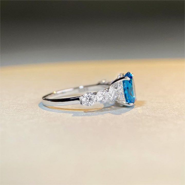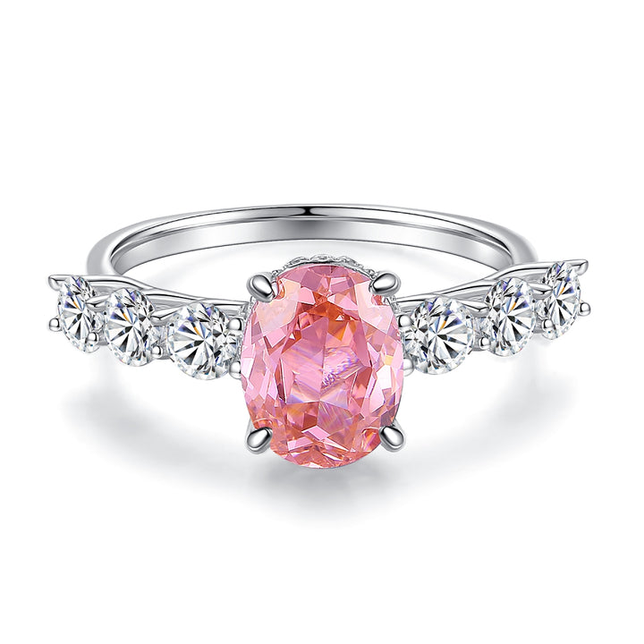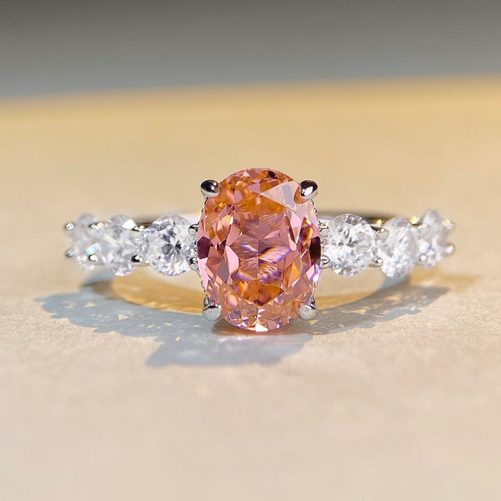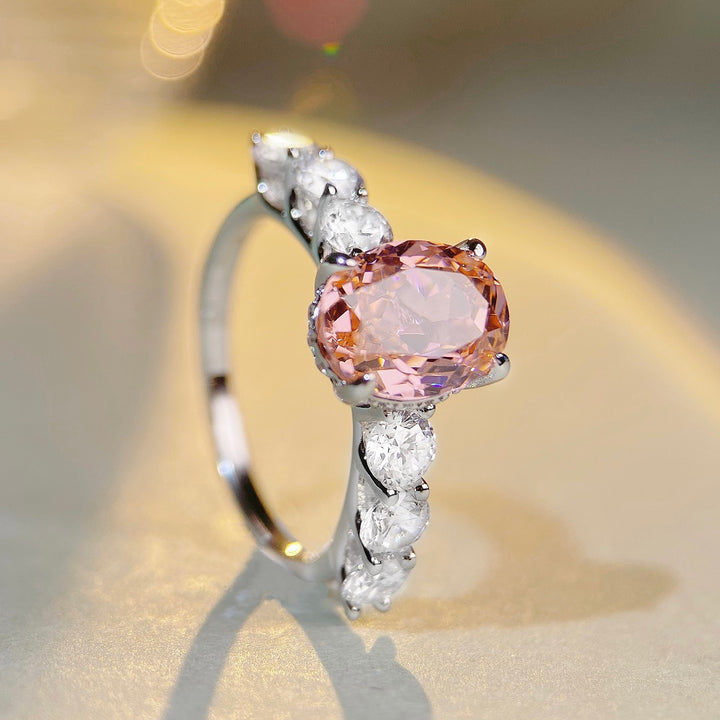 S925 pure silver ring for women, 3-carat pigeon egg shaped diamond ring, Fenda color women's ring design