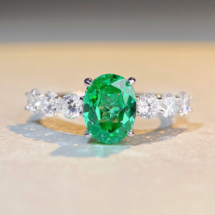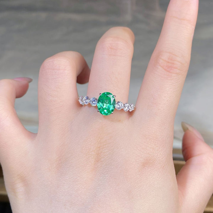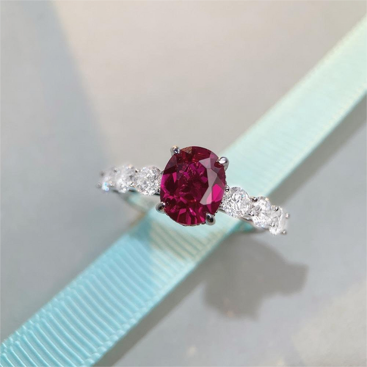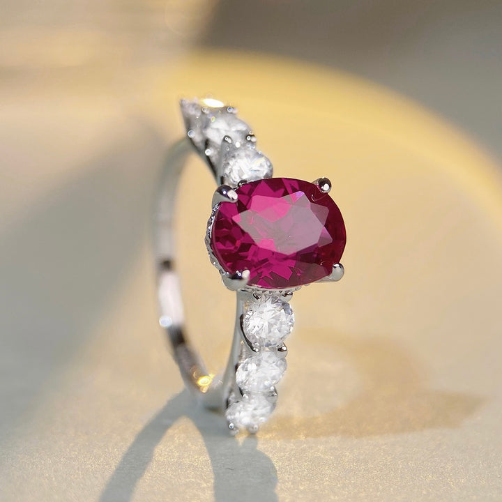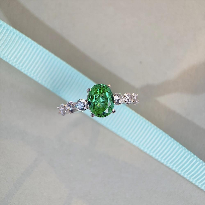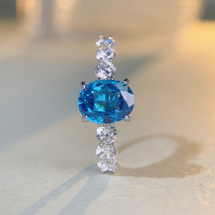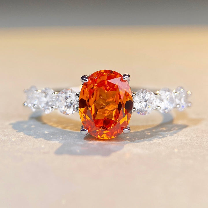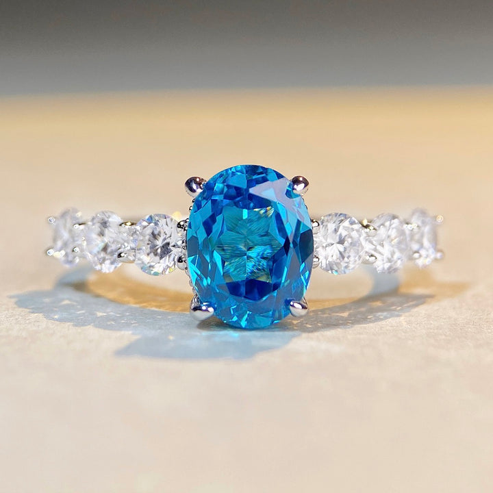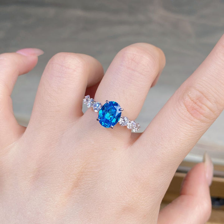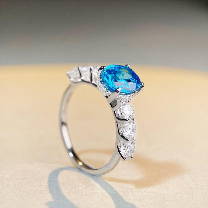 S925 pure silver ring for women, 3-carat pigeon egg shaped diamond ring, Fenda color women's ring design