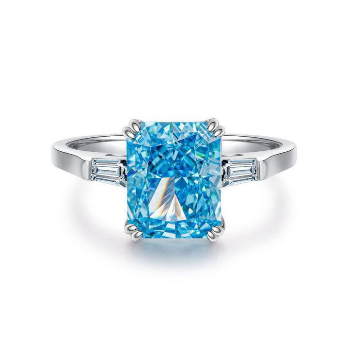 S925 pure silver ring with a light luxury and high-end feel, sea blue zircon ring for women, ins style silver ring