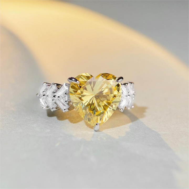 S925 sterling silver heart-shaped heart ring, women's yellow diamond explosive zircon high carbon diamond ring