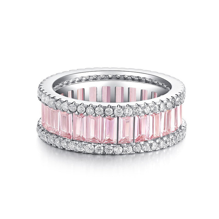 S925 sterling silver rainbow ring women's colorful zircon silver ring multi-color full diamond ring