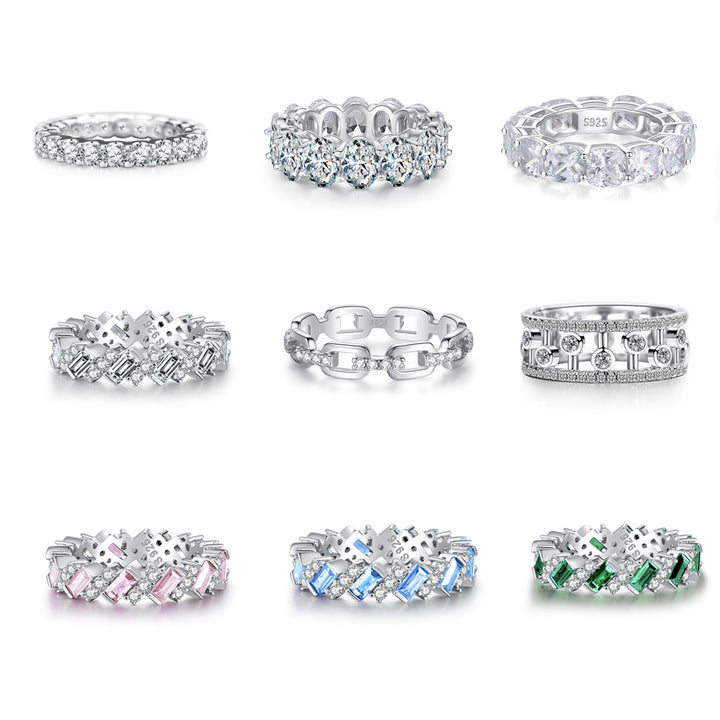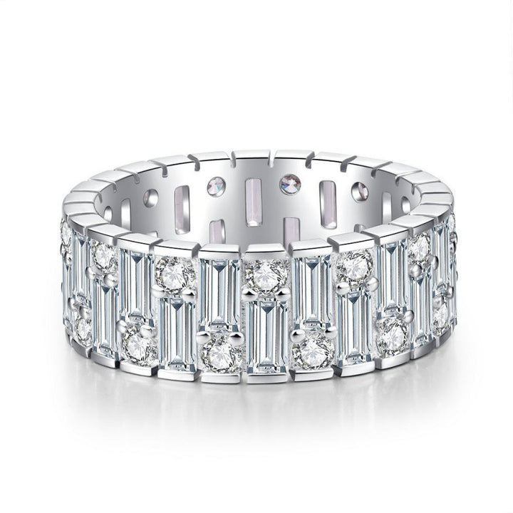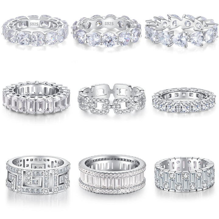 S925 sterling silver ring, men's and women's diamond ring, row ring, zircon ring, full of diamonds