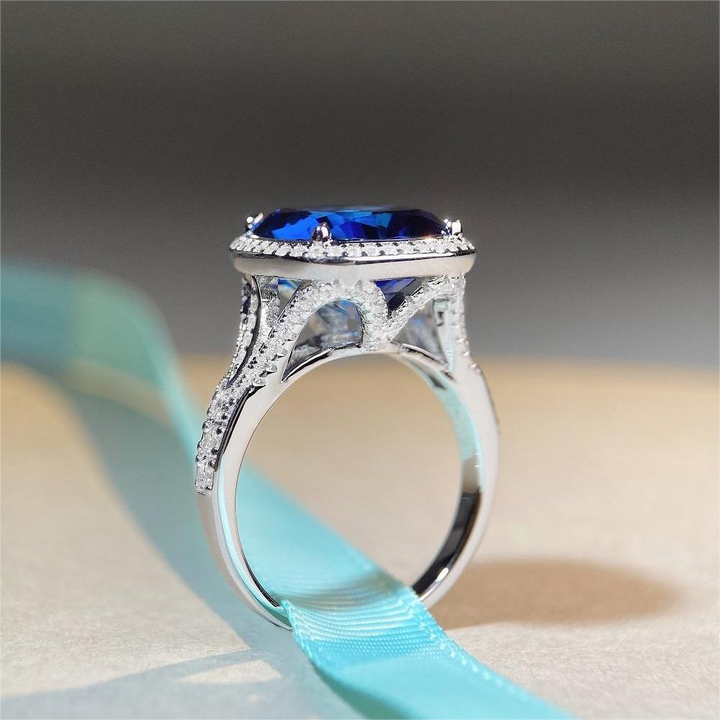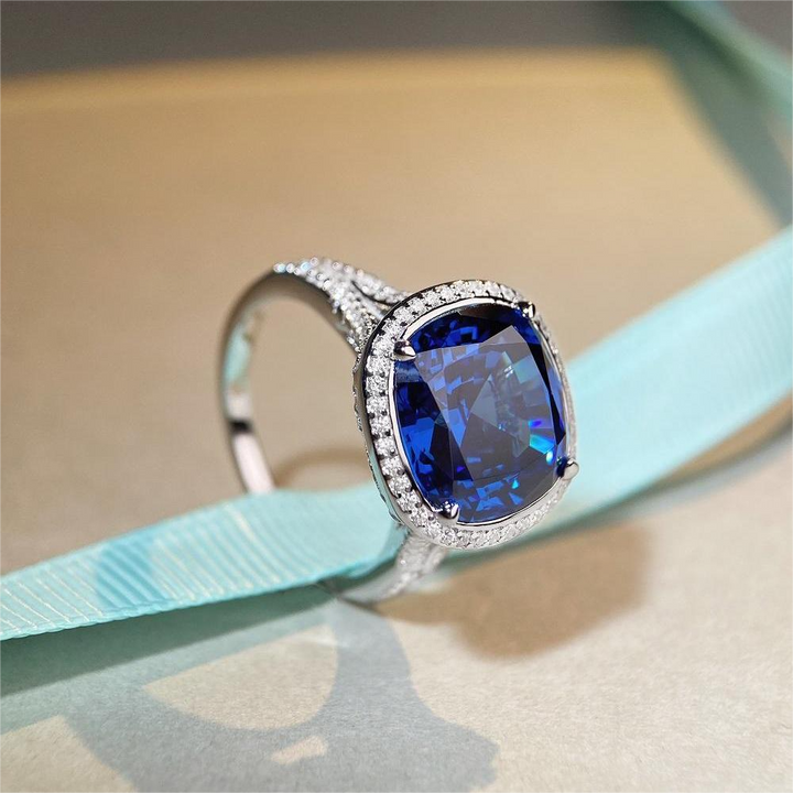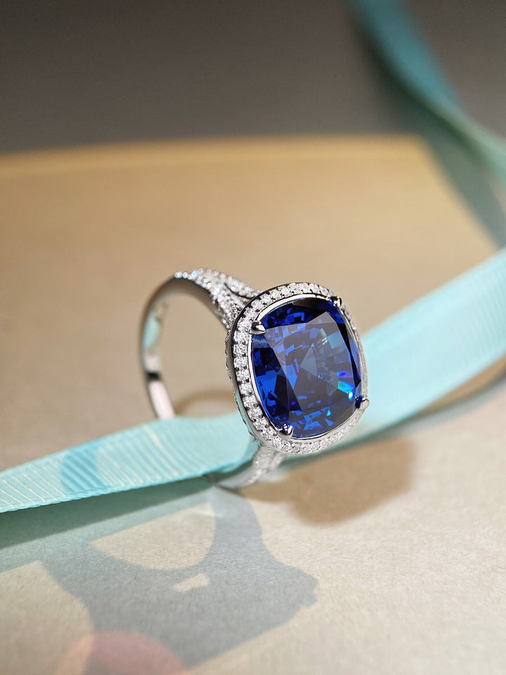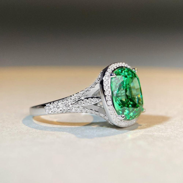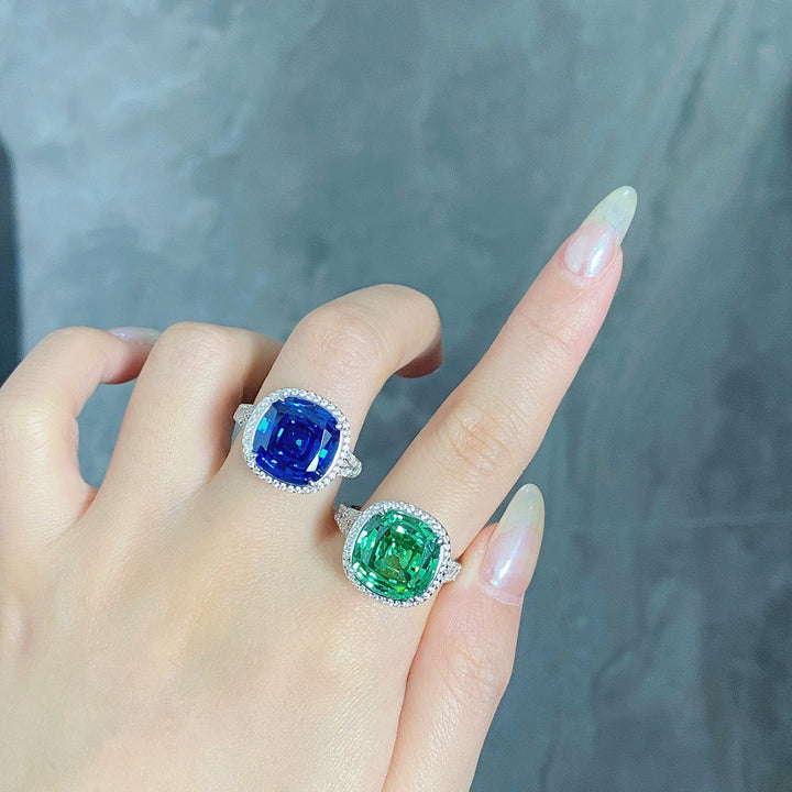 S925 sterling silver ring, women's Paraiba green high carbon diamond 10 carat European and American zircon ring