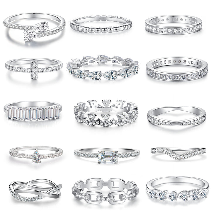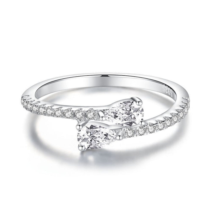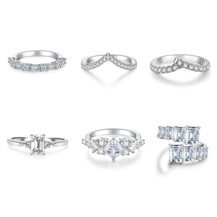 S925 sterling silver small diamond ring V-shaped diamond ring with 1 female zircon combination layered index finger tail ring