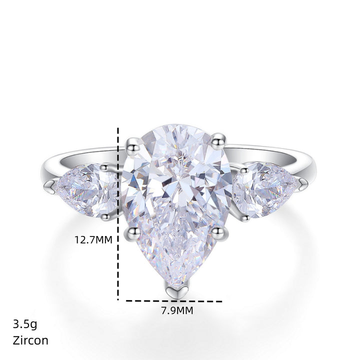 Simple Water Drop Ring S925 Pure Silver Zircon Finger Pure Silver Ring Does Not Fade
