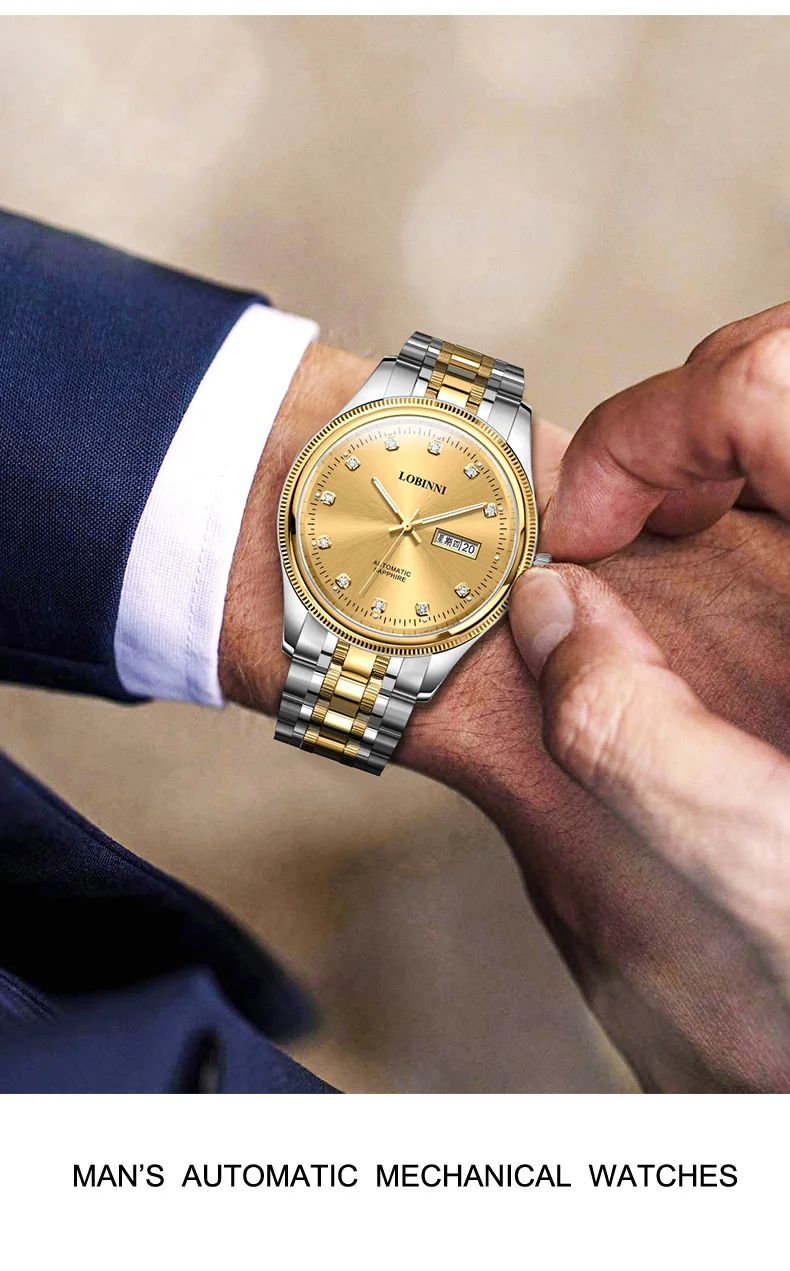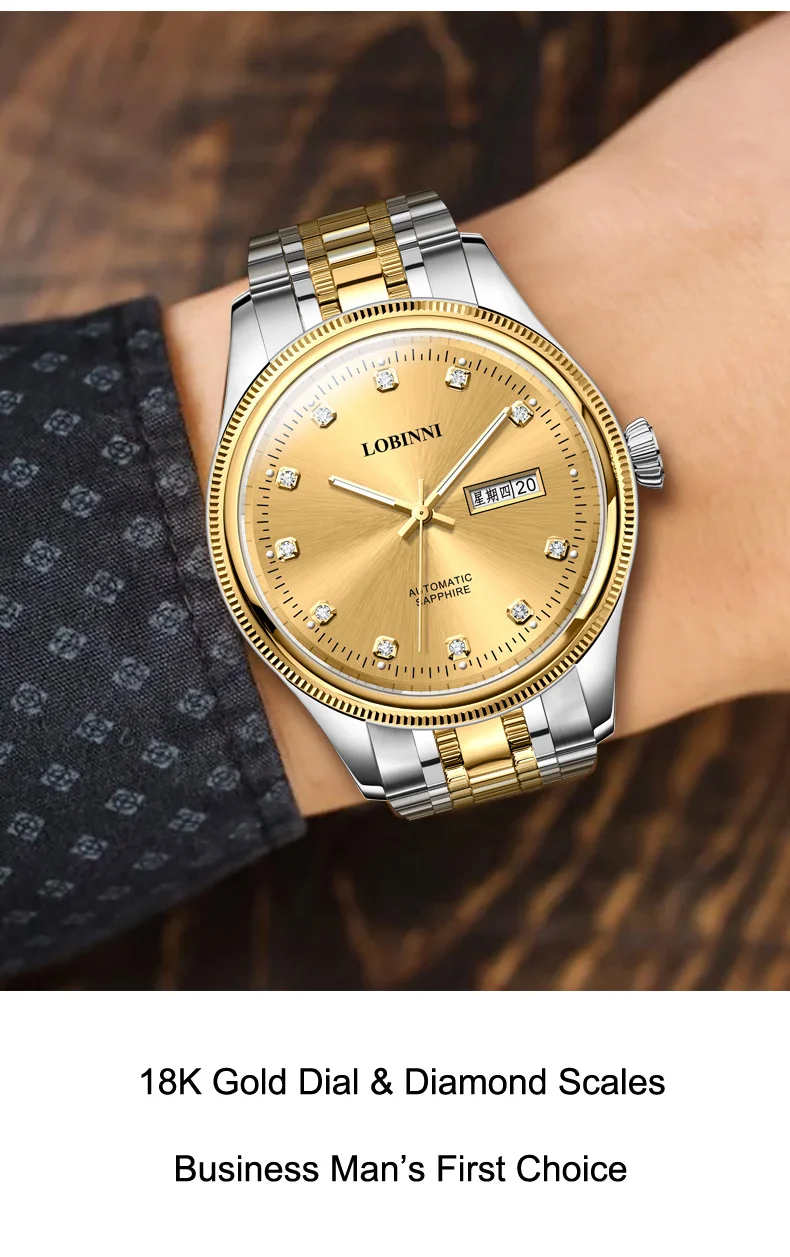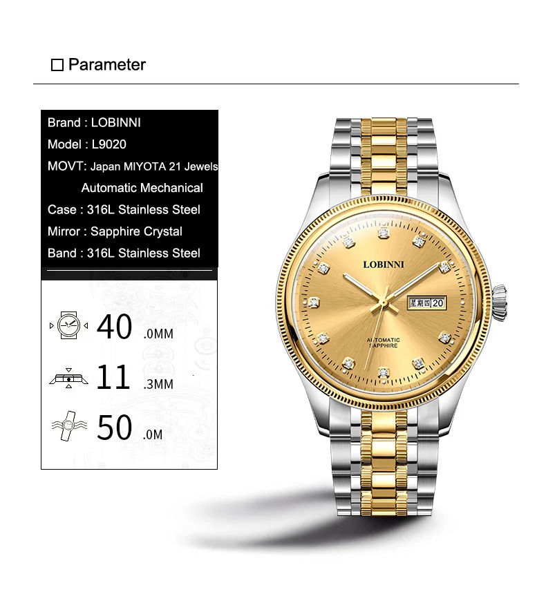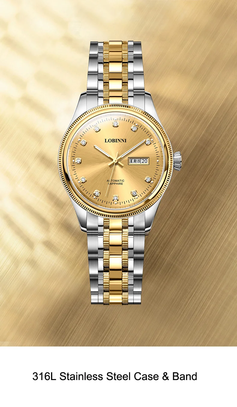 Switzerland Luxury Brand LOBINNI Japan MIYOTA Automatic Mechanical Men's Watches Sapphire 50 M Waterproof Diamond Clock L9020