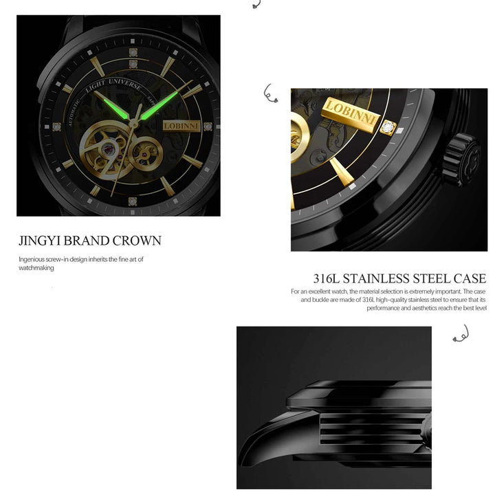 Switzerland Luxury Men's Mechanical Watch Automatic Self-wind Skeleton Watches Business Leather Original Design montre homme