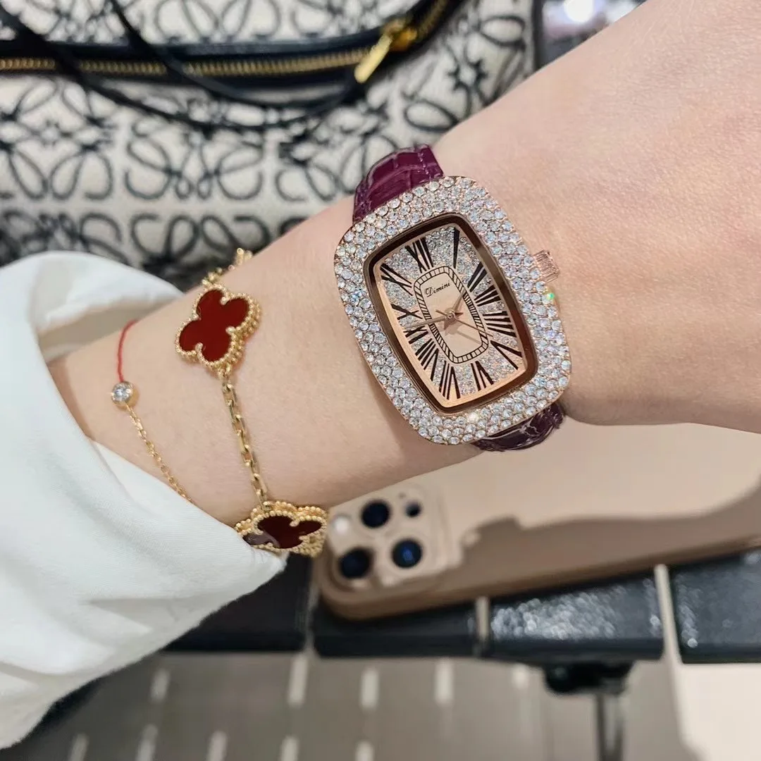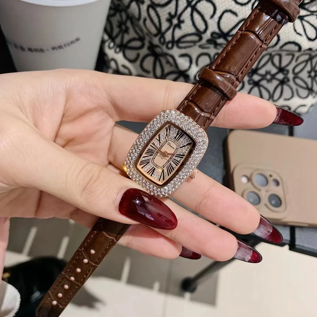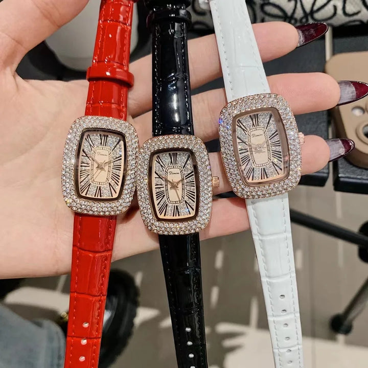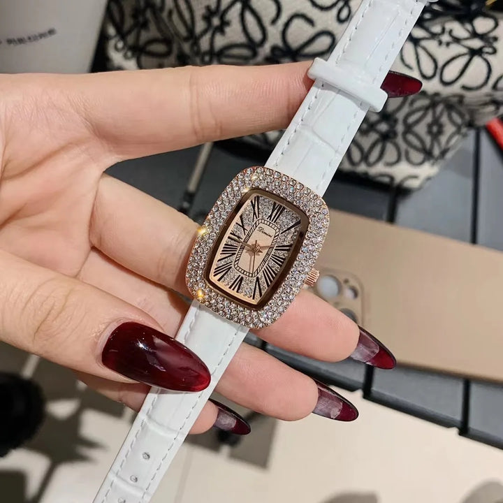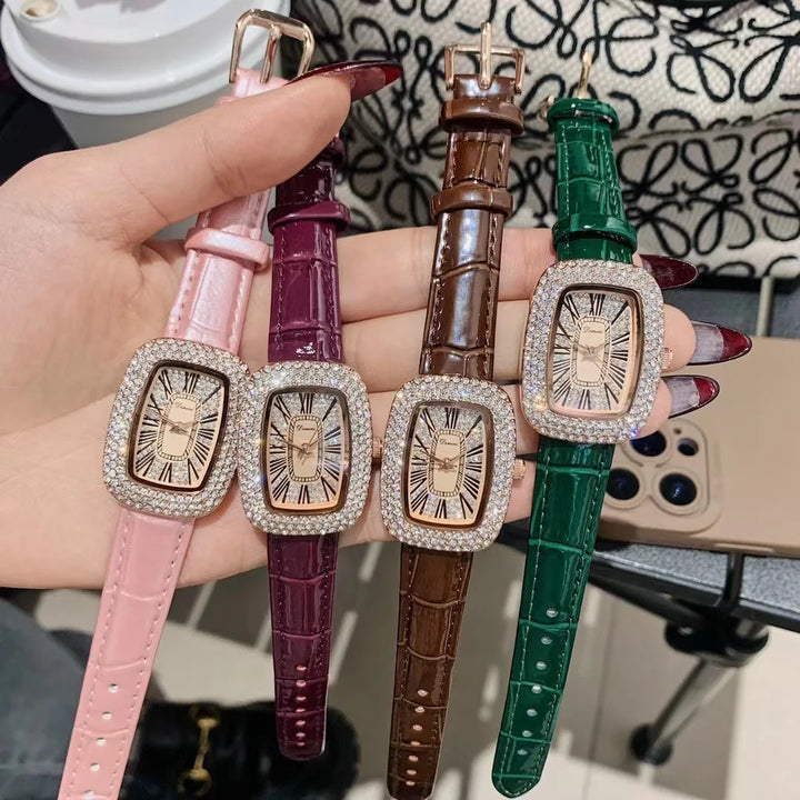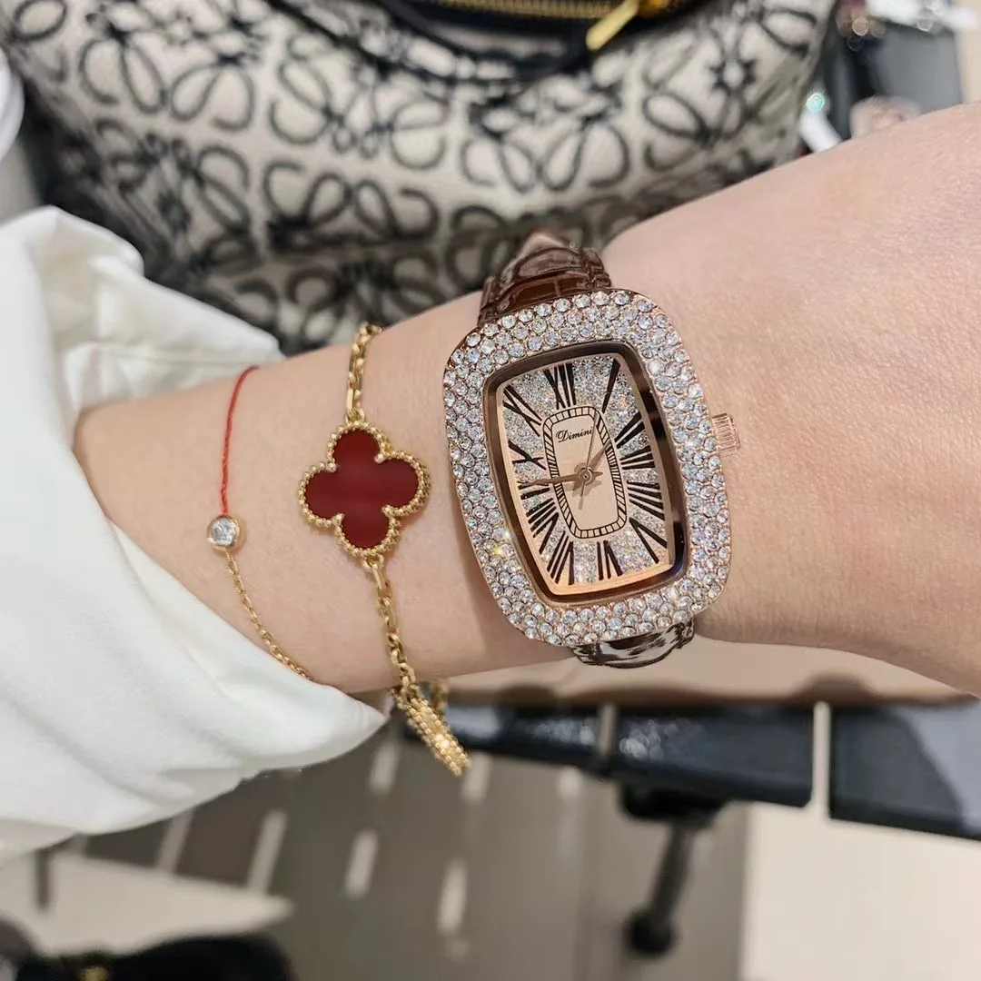 Vintage Square Watches for Women Sparkly Zircons Crystals Wrist watch Water Resistant Leather Strap Watches Roman Retro Relojes