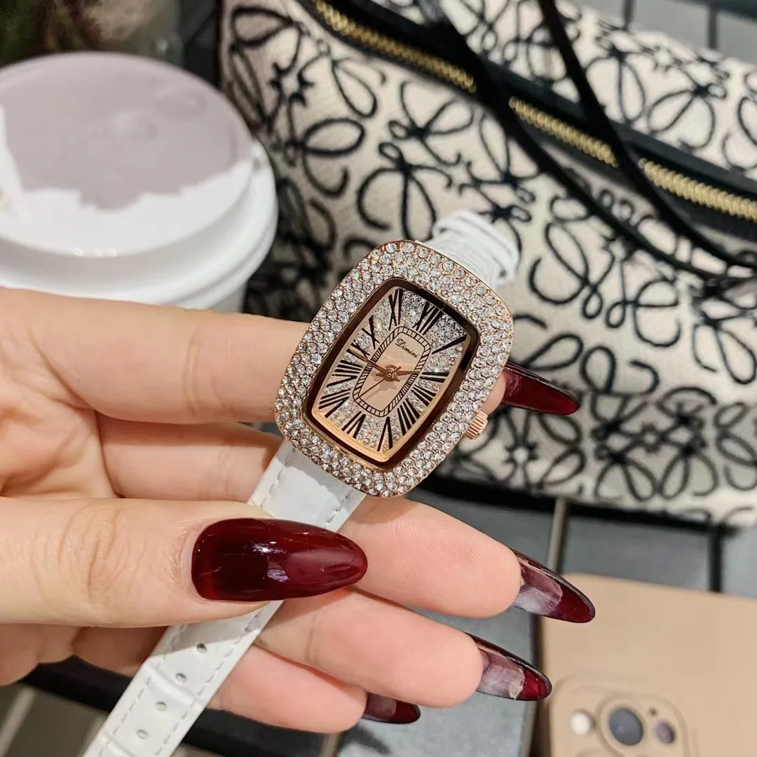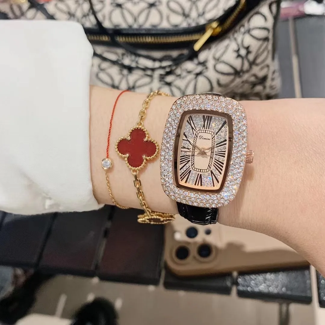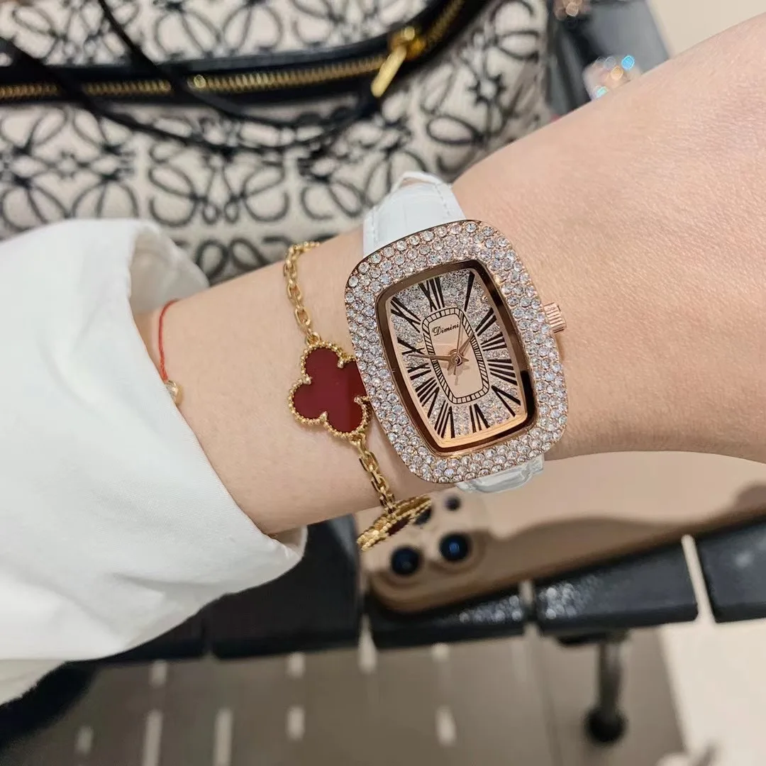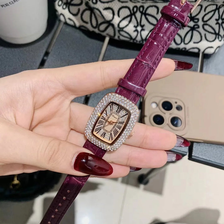 Vintage Square Watches for Women Sparkly Zircons Crystals Wrist watch Water Resistant Leather Strap Watches Roman Retro Relojes